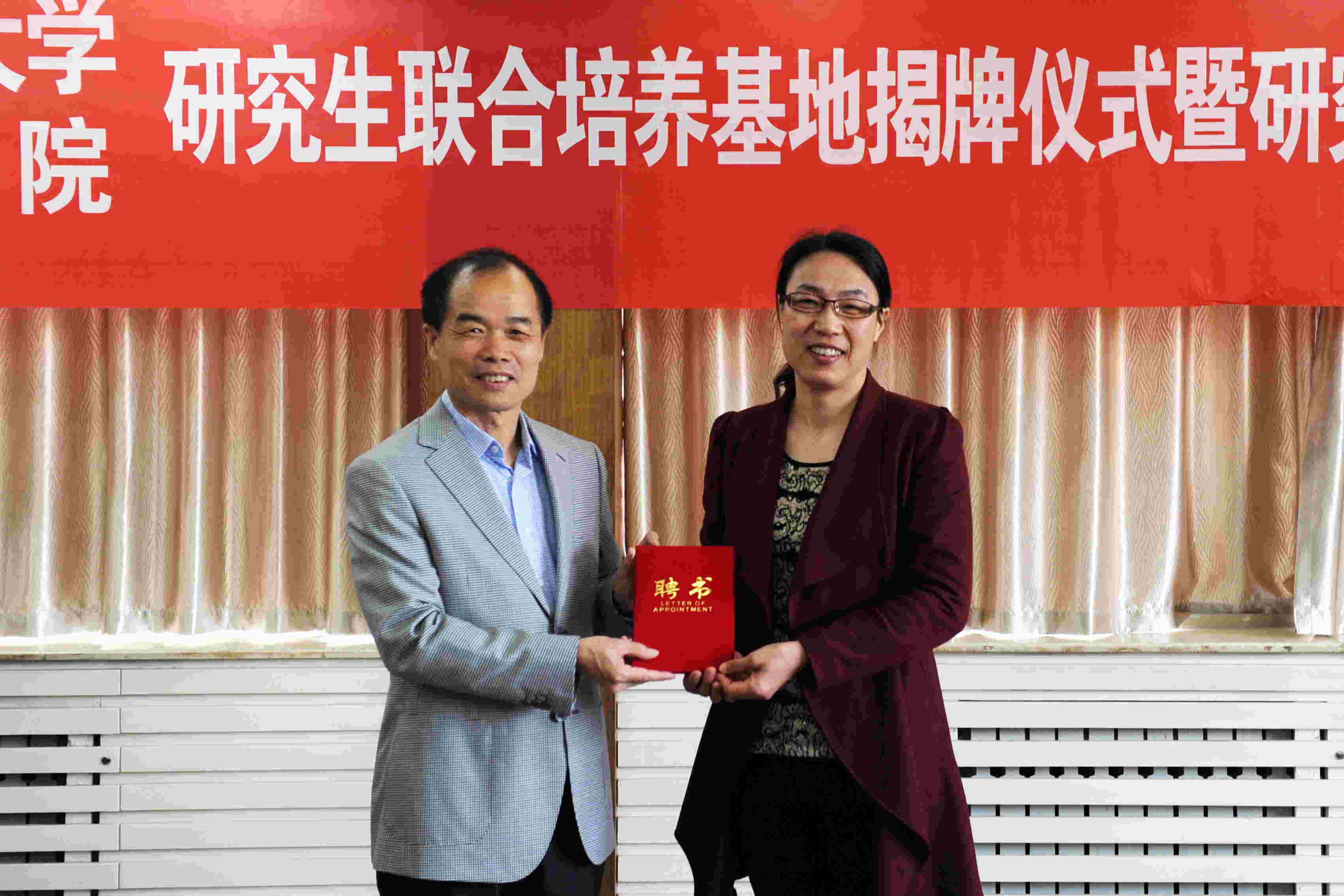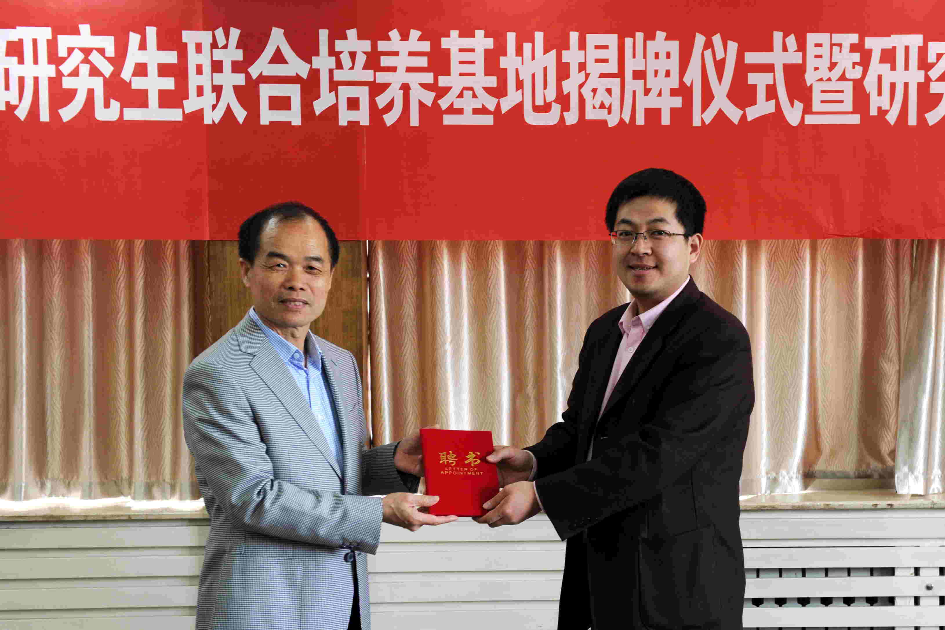 刘文烈与苗德华共同为联合培养研究生基地揭牌,张业赏与苗德华分别代表双方签署联合培养研究生协议书,苗德华向我系李宏伟教授和章健副教授颁发了兼职硕士生导师聘书。
