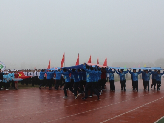 4月20日,滨州学院第十三届运动会在运动场隆重拉开序幕。机电工程学院学生方队在运动场参加运动会开幕式,运动健儿们参加各项比赛。