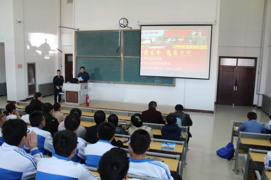 10月24日下午2点,我院在8教305举办了消防安全知识培训大会,由滨州消防服务中心的仝建棣教官主讲,我院院长李宏伟、党总支副书记王丕琢,全体教职工以及2017级部分同学参加。
