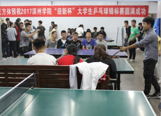 10月14日上午7点半,我院在学校乒乓球训练室参加了我校2017“迎新杯”大学生乒乓球锦标赛,我院彭海霞、周山山、蔡艳伟、朱浩然、刘衍璋、姬生源、张晓蓉、孙笑妹共8名同学参加。