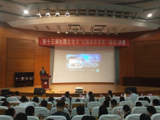 本次比赛采取讲解展示的形式,各个社团抽签决定出场顺序。其中,我院代表崔书彬同学通过演讲并结合PPT的形式,向在场的师生详细介绍了机电产品创新协会的社团特色、历年成绩、内部建设以及对未来的发展规划等等,他生动的演讲赢得了全场师生的阵阵掌声。每个社团介绍完毕后,由评委老师进行打分和点评。最终,我院机电产品创新协会获得第六名的好成绩。