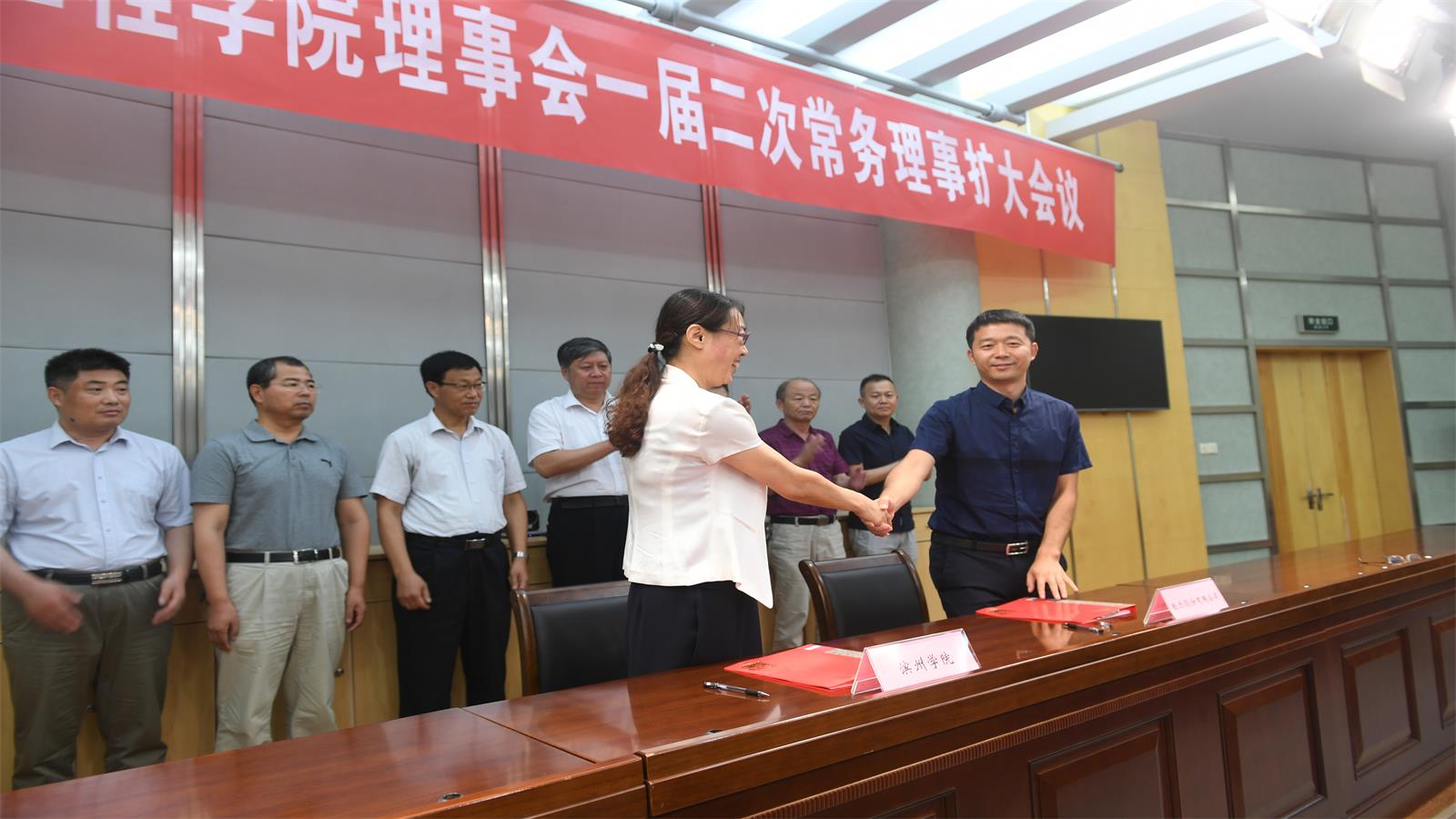 会上,增补歌尔股份有限公司、香驰控股有限公司、东辰控股集团有限公司为常务理事单位,增补东方蓝天钛金科技有限公司、山东渤海油脂工业有限公司为理事单位。我校与歌尔股份有限公司、香驰控股有限公司分别签订《校企产学研合作协议》。与会理事分别作了交流发言,对机电工程学院和理事会的工作提出了建设性意见和建议。