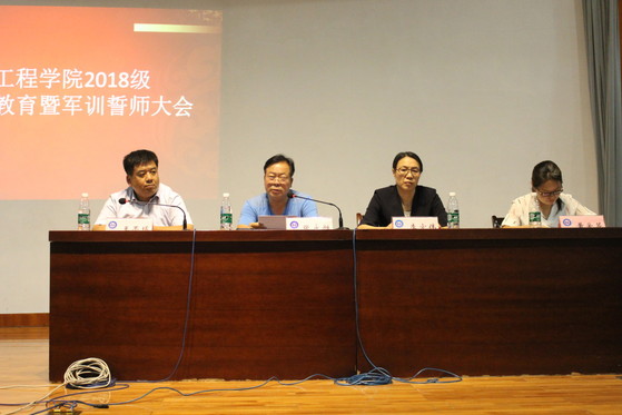 大会开始前,2018级新生按照秩序入场,并观看了迎新视频。会议开始,全体师生起立,奏国歌;首先由院长李宏伟发表讲话,院长首先对新同学们表示热烈欢迎,并将学院的概况和优秀事迹,院规院纪介绍给同学们,并对同学们的学习提出了殷切的期望。接下来是教师代表牛得学老师发言,希望同学们在大学生活制定自己的学习计划和目标,不畏困难,找到自我实现的途径。然后由老生代表张贤和新生代表李丹洋发言,张贤同学表达了自己的学习经验以及李丹洋表达了自己对大学的期待。然后由学生会主席李明飞带领进行军训庄严宣誓,最后张永胜书记做出总结,鼓励同学们充分利用自己的大学生活,要不负青春、不负理想。大会进行第二项,由宋立军和纪建茂老师对即将到来的军训活动发表讲话。靳雪银老师从一个小视频入手,让新生意识到大学时间的宝贵,并详细说明了军训时期的注意事项,希望同学们注意安全。此次大会顺利的落下了帷幕。