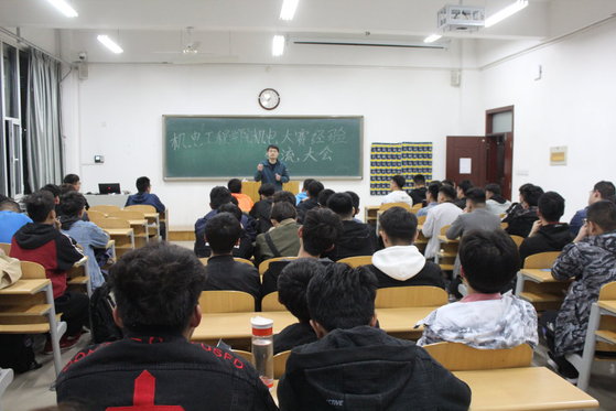 为了进一步做好机电大赛的备赛工作,帮助参加机电大赛的同学日后少走弯路,更好地成长与成才,利于规划备赛过程。4月3日晚7点,机电工程学院于八教110举办机电工程学院举办机电大赛经验交流大会。此次会议由牛得学老师主持开展,2017级、2018级参赛同学参加。