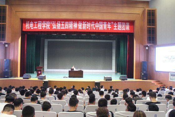 为引导和激励广大青年传承和弘扬五四精神,积极投身建设中国特色社会主义的伟大实践。5月12日晚,机电工程学院学生党支部书记靳雪银老师在学院会堂给全院学生上了一堂生动的“弘扬五四精神,做新时代中国青年”主题团课,机电工程学院学生党支部全体党员及16、 17、18级全体团员参加。