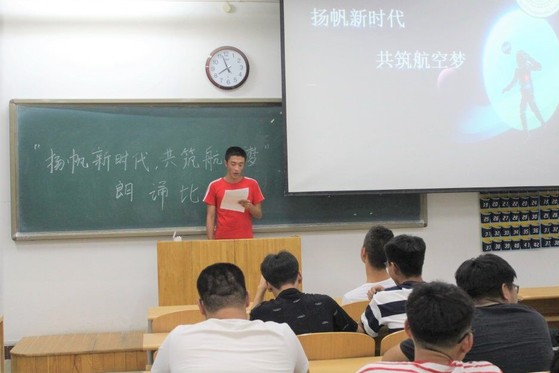 为充分发挥校园文化育人功能,进一步坚定发展信心、凝聚发展力量、展示发展成果,机电工程学院于6月17日在8教113教室举办了“扬帆新时代,共筑航空梦”朗诵比赛。此次比赛由机电工程学院学习部主办,18级部分同学参加了此次朗诵比赛。