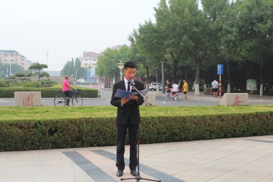 主持人宣布升旗仪式开始后,国旗护卫队雄赳赳、气昂昂地将国旗护送至升旗台下,伴随着国歌,五星红旗再一次飘扬在滨州学院的上空,在场的全体师生对五星红旗行了庄严的注目礼直至国歌结束。作为新学年滨州学院举行的第一次升旗仪式,此次升旗仪式的主要目的是对新学年工作和学习进行激励与督促,学生会代表发言结束后,由领誓人带领着重温入团誓词,要铭记当初立下的为共产主义奋斗终身的誓言。最后,团委书记刘宝民老师讲话,希望同学们在时代潮流中激流勇进,投身建设更美好的国家。