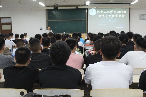 为了让新生对机电工程学院有更深的认识,提高学生的安全意识。2019年8月30日晚上7点半,机电工程学院于工科楼2-112举办了2019级新生安全教育大会,机电工程学院辅导员纪建茂老师组织开展,辅导员宋立军老师,辅导员靳雪银老师参加此次会议,2019级全体同学参加。