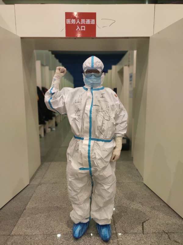 鲁迅先生说过,“我们自古以来就有埋头苦干的人,有拼命硬干的人,有为民请命的人,有舍身求法的人”。山东省第八批援鄂医疗队队员、滨州市第四批援鄂医疗队队员、阳信县人民医院呼吸内科副主任王艳贞正是这样的人之一。在这场没有硝烟的战争中,她放弃休假、团圆,选择与病魔斗争、与死神抗衡,毅然决然地逆行,奔赴武汉。除了完成日常医疗护理工作,她和同事们还把汉阳方舱医院布置成了一个温馨的家,在墙上贴满鼓励的话语、漫画、千纸鹤、手绘风筝等,带领患者一起做呼吸操、八段锦。4月1日,她随滨州市第四批援鄂医疗队平安凯旋,在欢迎仪式上作为代表发言。她用生命护佑生命,用温暖传递温暖,她是勇敢的战士,是真正的英雄。