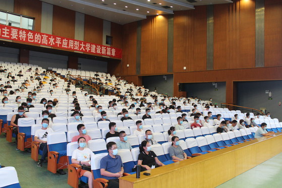 苏红晓结合国内外特殊情况,从抗击新冠肺炎疫情的纪实、新冠病毒的常识和临床表现、工作目标、个人防护原则和开学防护措施等方面为同学们讲解防疫知识。一个千万人口的中心城市主动“封城……”一幕幕感人纪实让全场同学们感动不止、敬佩不已。苏红晓表示要把“控制传染源,切断传播途径,保障师生员工安全”作为防疫工作的总体目标。他还讲到,日常生活中要注意个人防护用品选择和良好卫生习惯的养成,要开展经常性防疫大会,实施小单元集体管理,进出学校登记,加强室内通风换气,宿舍严禁外来人员,把传染病防控知识与技能等内容纳入入学教育。最后,苏红晓从专家的视角,专业、耐心地讲解了正确佩戴口罩、洗手的防控知识,为师生普及了防疫知识,认识到做好个人防护的重要性。