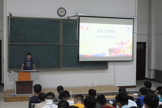 为增强机电工程学院学生考研信心,树立奋斗目标,提升考研竞争力,8月26日晚,我院于八教305召开2017级考研动员大会。机电工程学院党总支书记王丕琢、院长李宏伟、党总支副书记王春磊、辅导员宋立军老师及部分老师和2017级全体学生参加。