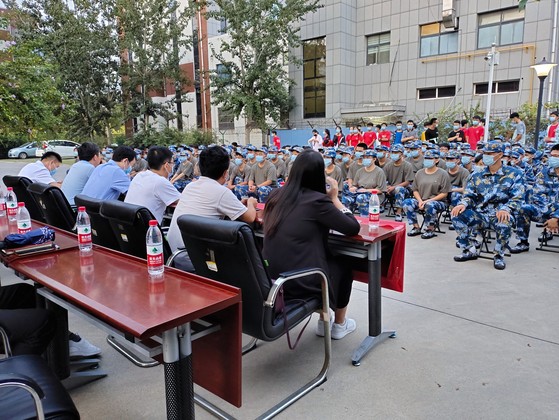 大会伊始,辅导员宋立军老师向全体参会同学介绍了军训的重要性,并对于军训的内容做了详细的介绍,强调了军训对于同学们的重要性,要求同学们要有集体荣誉感,努力训练、整理好内务、打扫好卫生。其次,,要求同学们积极调整心态,以饱满的精神状态迎接军训生活,宋老师希望同学们在新的环境中注重提高自己的身体素质,实践动手能力,发扬吃苦耐劳精神。最后,宋老师强调军训是一个考验同学们意志力的过程,更是提升个人组织纪律性的过程,为此,同学们需要真正明白军训的意义,发扬艰苦奋斗的优良传统,以饱满的热情投入到军训中去,圆满完成军训任务。活动结束后,,有新生表示“在军训期间一定会严守纪律,遵守学校规定的作息时间,严格要求自己,一切行动听指挥。”