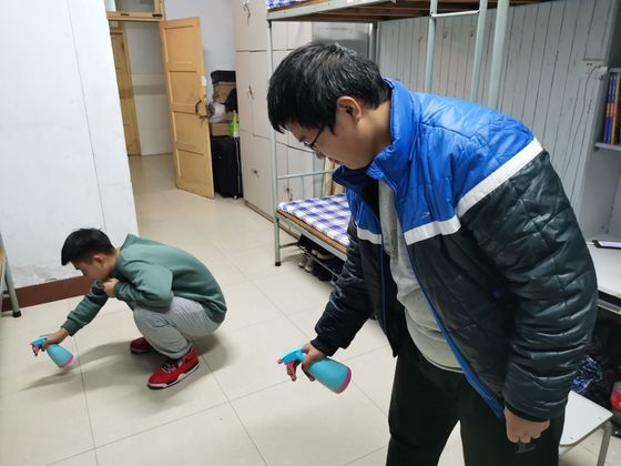 本次消毒工作主要对宿舍地面、阳台、卫生间、洗手池、门把手、水龙头开关、床底等区域进行了统一消杀,做到不留死角、不留盲区。此外,在消毒过程中,督查部部长韩振邦对同学们进行安全卫生教育,要求宿舍成员自觉遵守“每日清洁制度”规定内容,即要做好个人卫生、地面每日一扫拖、垃圾每日一倒、加强室内通风等清洁要求,切实提高了同学们的健康安全意识。同学们也积极配合工作人员的消毒工作,保证了本次宿舍消毒工作的顺利完成。