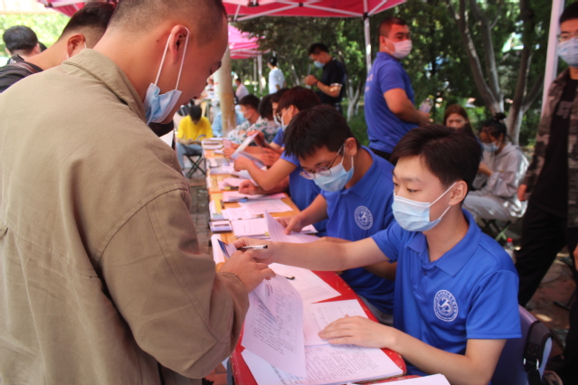 党总支书记王丕琢对前来报到的新生表达了欢迎和关怀,亲切地与新同学交流,关心同学们的报到情况,鼓励同学们要尽快熟悉适应新环境,叮嘱新生和志愿者要做好自身防护,确保每一位新生都能平安顺利完成报到,并肯定了学院迎新志愿者的辛勤付出。