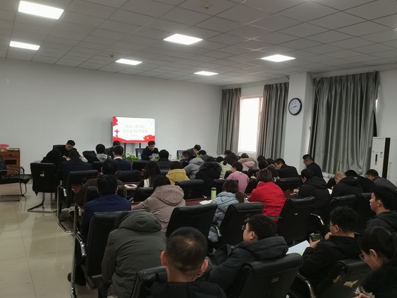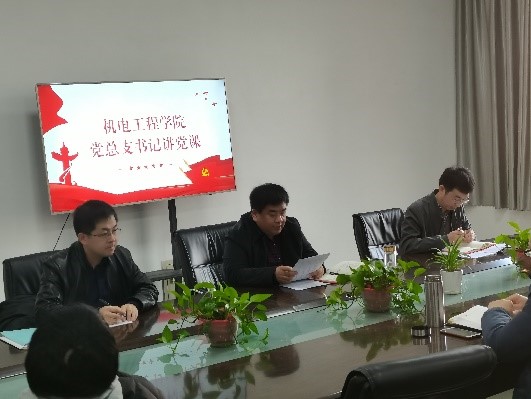12月14日,机电工程学院党总支书记王丕琢,以“深入学习领会伟大的建党精神,深刻把握辉煌的建党伟业,在新时代勇毅前行,奋发有为”为题,为学院全体教职工上党课。