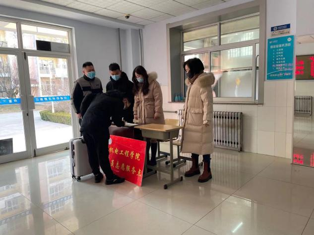 2月18日,滨州学院迎来春季开学,校园恢复了生机和活力。同时还多了一道亮丽的风景——“机电工程学院党员先锋岗”,他们是机电学院疫情防控的一支重要力量。“疫情当前,党员先行”,机电学院党员先锋岗由20多名学生党员党员和教工党员组成,由学院党总支王丕琢书记统一指挥,分别在7号、16号宿舍大厅维持秩序,同时帮助返校学生明晰在校防控流程、正确掌握疫情防控科学对策,为学院严格执行复学后的点对点闭环管理,筑牢疫情“防控墙”增强了防控力量。学生党员与辅导员密切联动,耐心指导学生做好返校复学和健康排查工作,在全面落实联防联控措施、构筑群防群治严密防线过程中发挥了党组织的战斗堡垒和先锋模范作用,使党旗在疫情防控一线高高飘扬。
