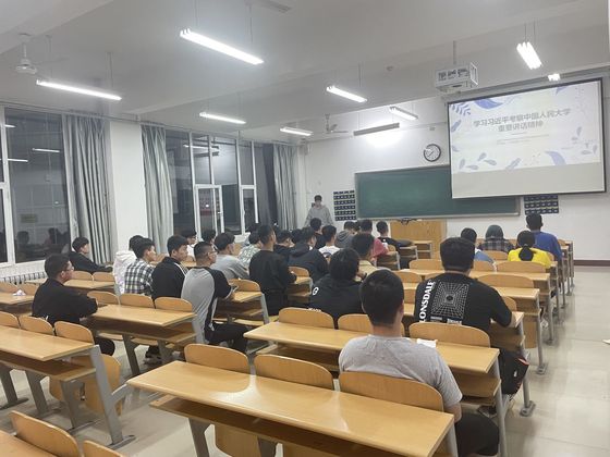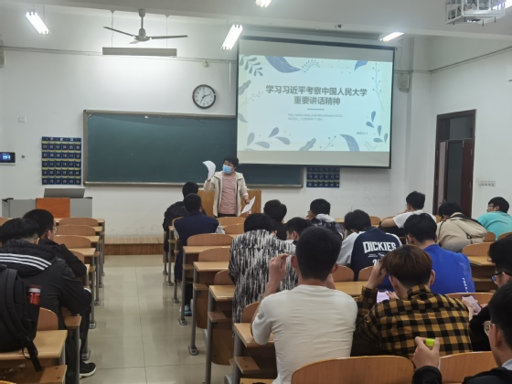 “5月1日晚,我与班级同学一起,在主题班会上学习了习近平总书记在考察中国人民大学时的重要讲话。通过学习,结合自己的工作实际,我深切体会到作为一名高校思想政治工作队伍人员,应该具有高尚的道德品行、高雅的学术修养和纯粹的仁爱之心。要将爱教育、爱学生和爱党爱国有机统一起来,在实践中不断提升自己的综合素质,使自己真正成为学生成长成才的人生导师,和健康生活的知心朋友。”学院辅导员刘云龙说。