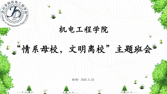 为做好2022届毕业生教育、管理和服务工作,确保毕业生离校前工作的顺利开展,倡导毕业生文明有序离校,机电工程学院于5月22日组织召开了2022届毕业生“情系母校、文明离校”主题班会。本次主题班会由各毕业班班主任主持召开,机电工程学院全体毕业生参会。