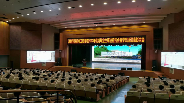 为了进一步推动学院学风建设,鼓励机电学子积极进取,培养良好风气,6月2日晚,机电工程学院于千人礼堂举办2022届优秀毕业生事迹报告会暨学风建设表彰大会。机电工程学院20级和21级全体学生参加。