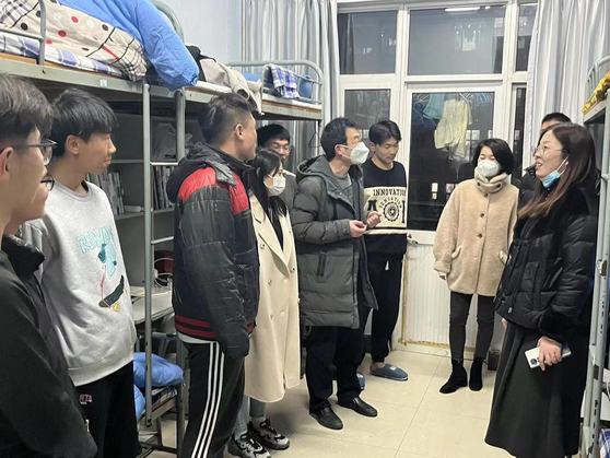 首先,辅导员们对宿舍安全隐患进行排查,对宿舍卫生、用电安全以及违禁物品等问题进行强调;其次,对学生的学习规划提出建议,并督促舍长监督同学们加紧复习,顺利通过期末考试;最后,辅导员着重强调寝室关系问题,并嘱咐舍友之间要相互理解、相互帮助,营造良好的宿舍氛围。
