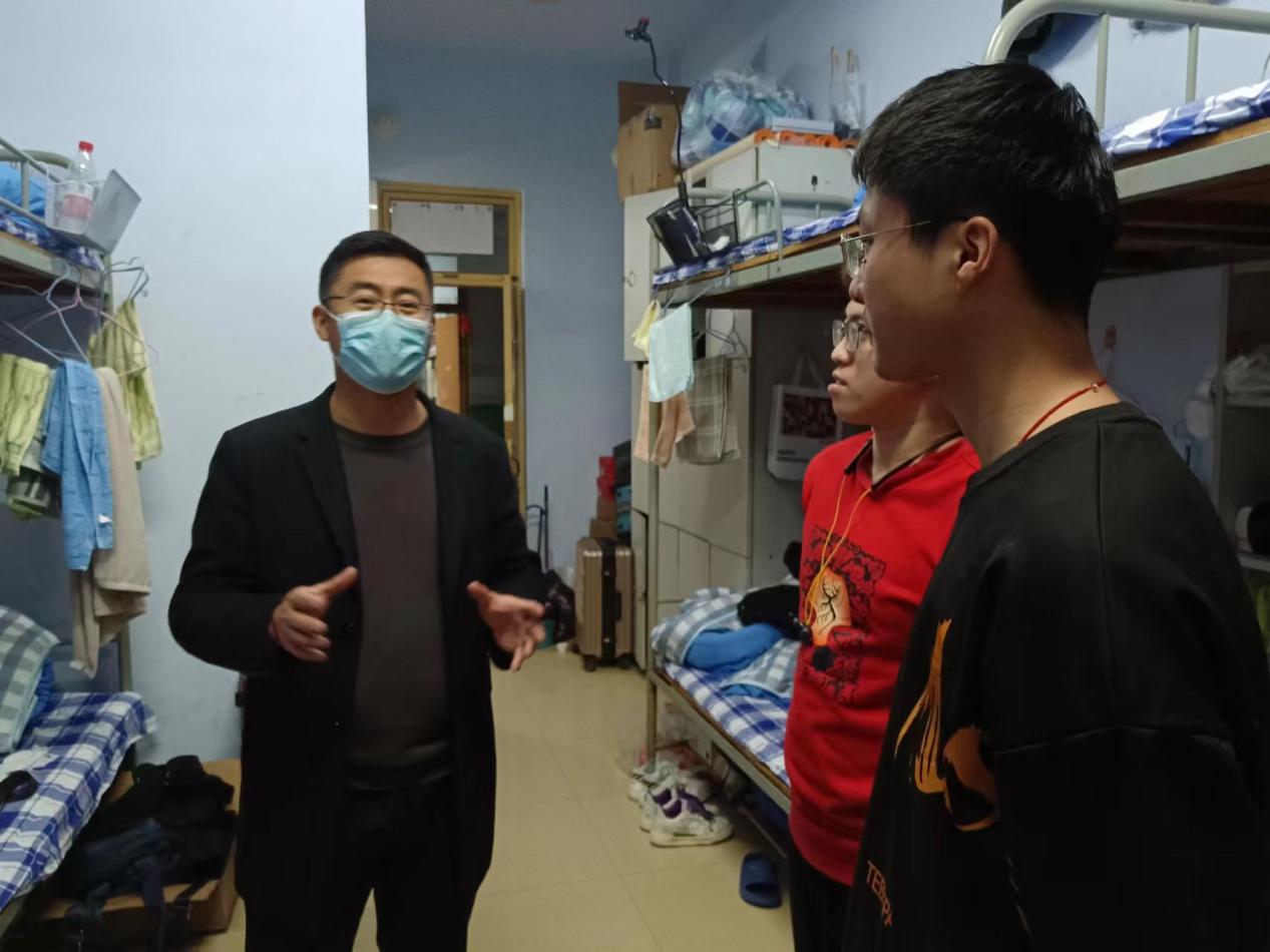 开学初,机电工程学院党总支副书记王春磊、副院长李辉带领全体辅导员、班主任深入学生公寓查看网课情况排查安全隐患并与学生亲切交流。