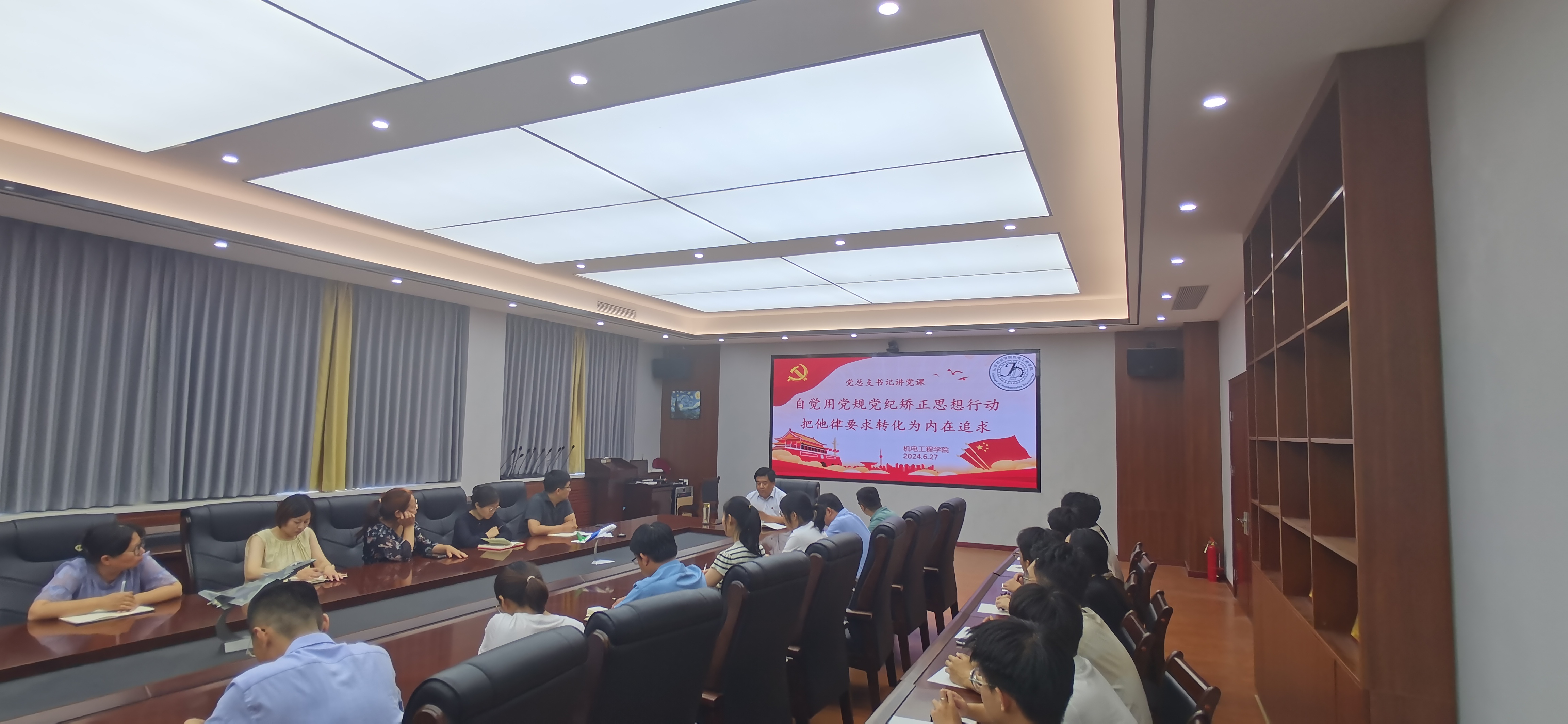 为深入开展党纪学习教育,强化党员纪律意识,将党纪学习教育融入日常,引导全体党员进一步学纪、知纪、明纪、守纪,强化遵守纪律的自觉,6月27日上午,我院党总支书记王丕琢以“自觉用党规党纪校正思想行动 把他律要求转化为内在追求”为题为全体党员师生讲纪律党课。