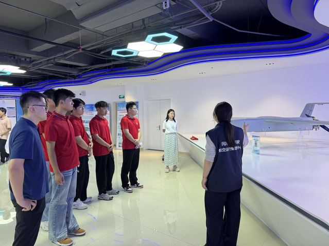 活动伊始,长空科技工作人员引领暑期“三下乡”团队成员步入展厅,多旋翼、固定翼等各类无人机有序排列,从工业级到科研教学定制款,丰富的展品让队员们目不暇接。工作人员细致讲解每款无人机的独特技术优势,如先进飞控算法如何保障飞行稳定、高效动力系统怎样提升续航能力、精准测绘成像技术怎样获取清晰图像等,还分享了公司在无人机关键技术研发上的诸多突破。