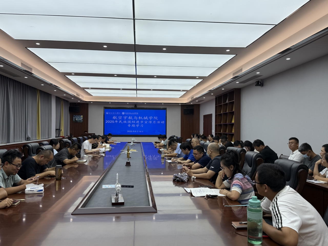 为深入推进铸牢中华民族共同体意识宣传教育,根据《太阳集团2025年民族团结进步宣传月活动实施方案》要求,9月16日,太阳tyc集团5997组织全体教职工在工程训练中心324会议室开展2025年民族团结进步宣传月活动,全体教职工参加。
