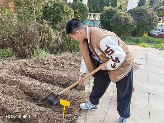 活动伊始,同学们学习种植流程、工具使用规范及活动核心宗旨,随后大家领取花苗、肥料、水壶等物资。同学们以小组为单位协作分工,有的翻松土壤、有的精准施肥、有的仔细浇灌,在亲手照料植物的过程中,主动交流种植技巧,分享日常感悟。大家关注植物生长与身心状态的关联,同学们在耐心培育中沉淀情绪、舒缓压力,种植园里始终洋溢着轻松有序的氛围。